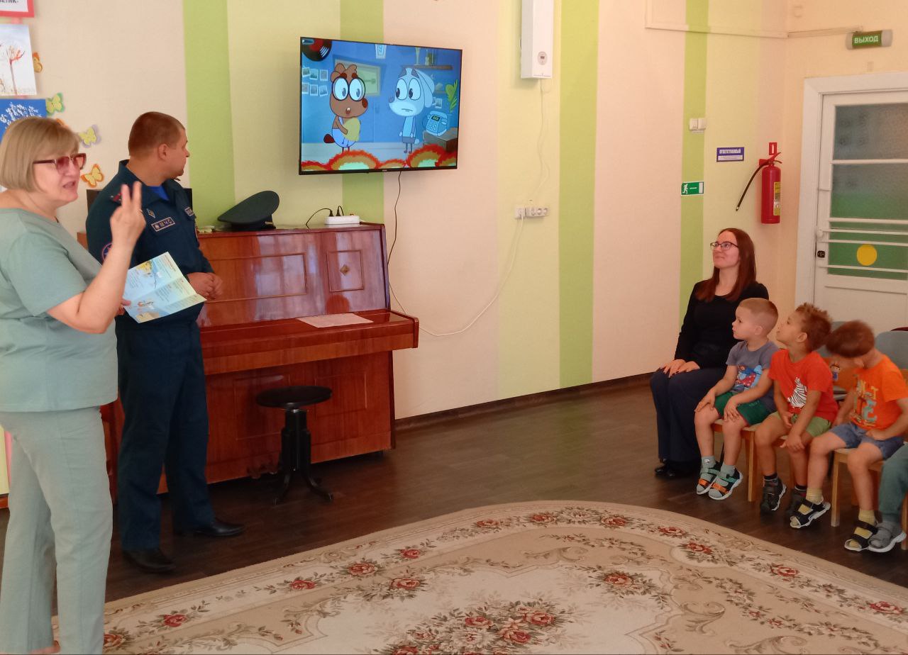 В рамках межведомственного взаимодействия и проведения республиканской информационно-пропагандистской акции "Безопасные каникулы" наш детский сад посетил Буксанов Руслан Александрович, начальник дежурной смены ПАЧС № 5. Сотрудник МЧС провёл короткую обучающую беседу с воспитанниками о пожароопасных ситуациях и их последствиях, а также продемонстрировал тематический мультфильм о безопасности в быту.