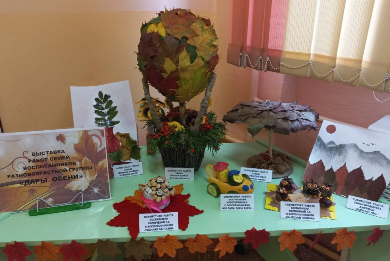 Воспитатели организовали и провели выставку совместных работ детей и родителей на тему: "Дары осени"